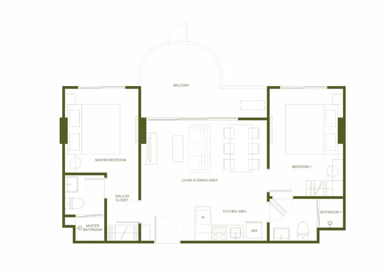 แนวคิดการออกแบบเน้นการไหลเวียนของสายน้ำที่โอบล้อมพื้นที่ส่วนกลาง สร้างบรรยากาศเสมือนลากูนส่วนตัว รายล้อมด้วยสวนสีเขียวและสระว่ายน้ำขนาดใหญ่ มอบความรู้สึกสงบ เป็นส่วนตัว และผ่อนคลายอย่างต่อเนื่อง