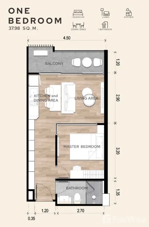 - 1 ห้องนอน ดูเพล็กซ์ 49.5 ตร.ม.