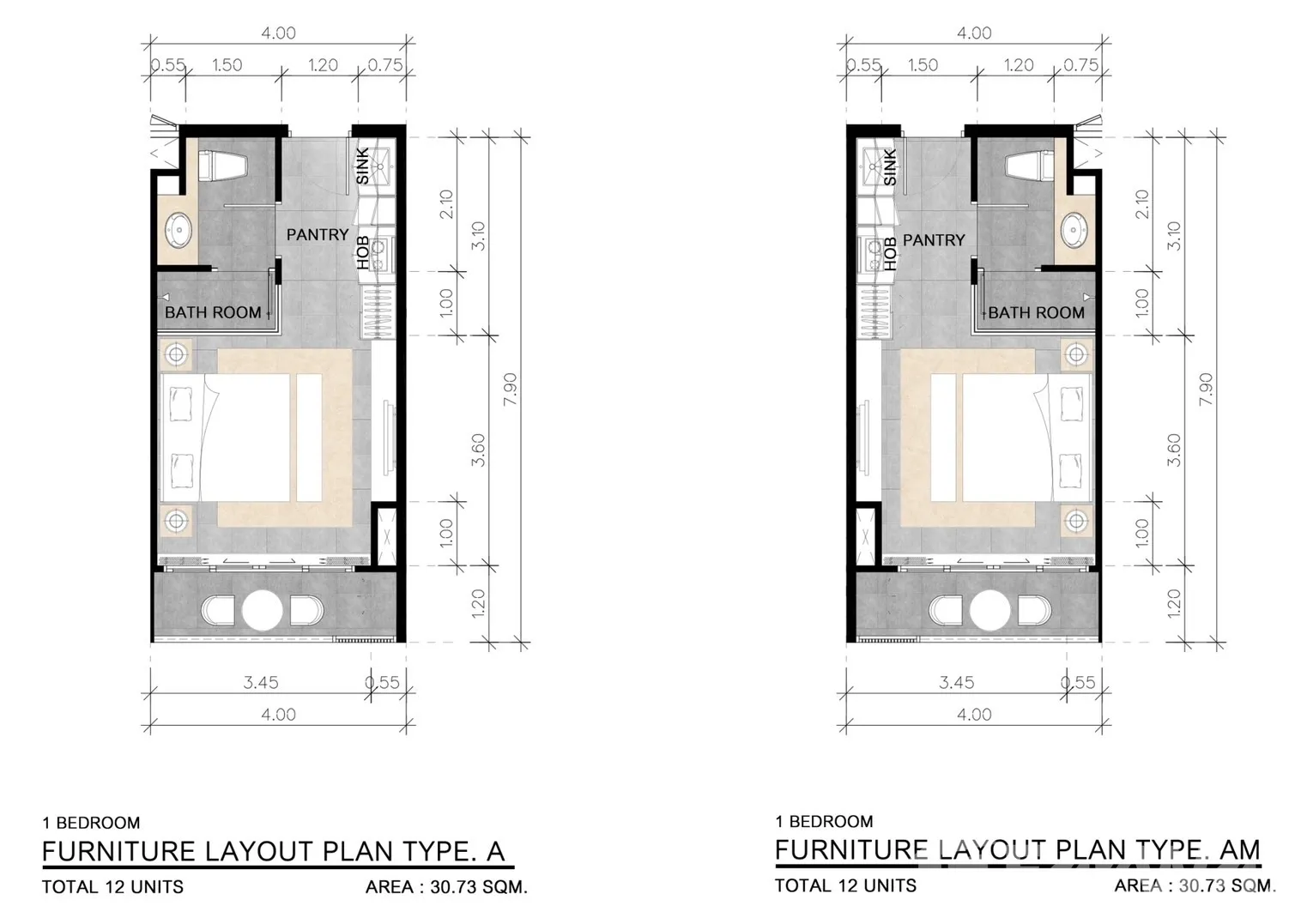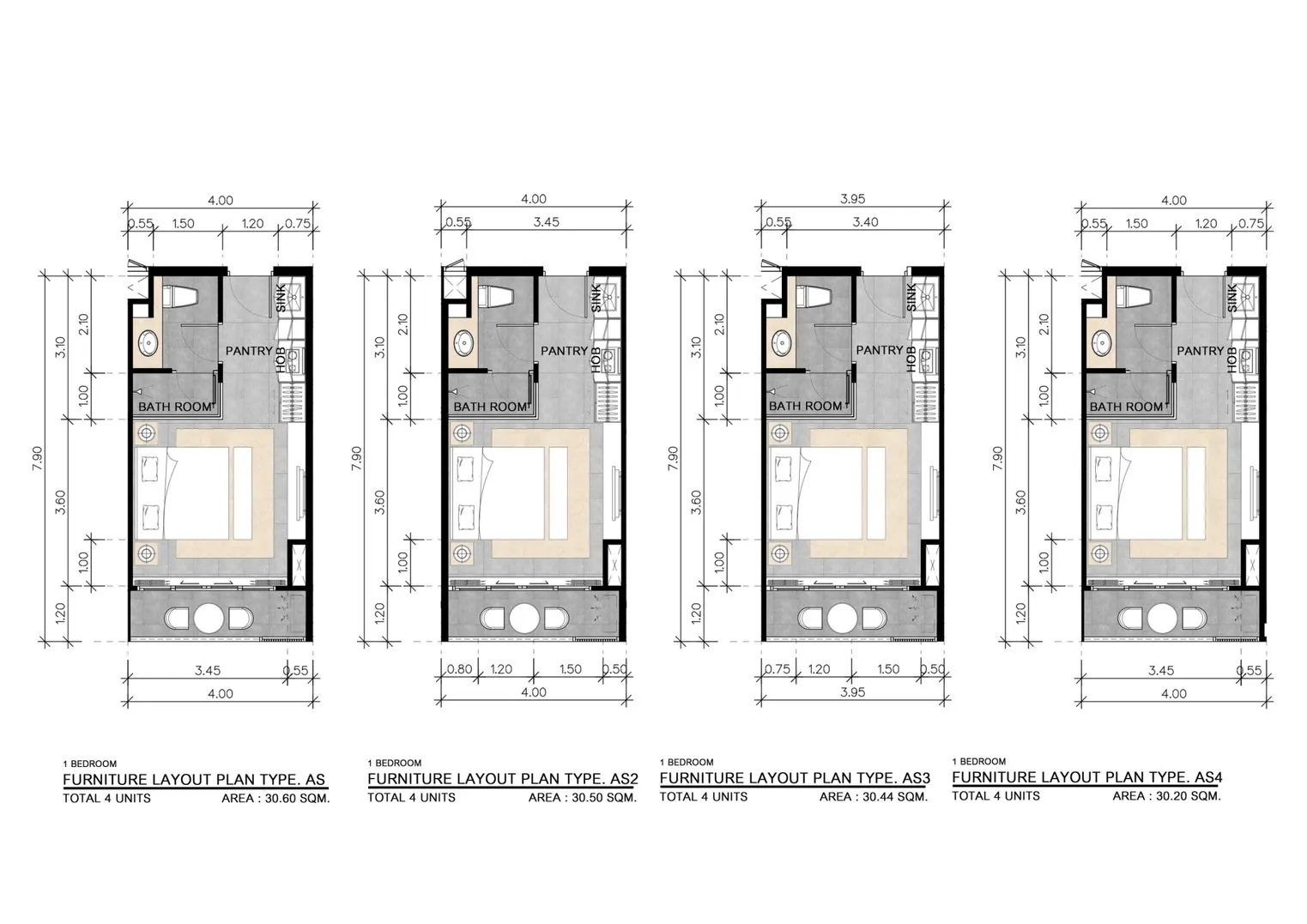ขนาดยูนิต: 30 ตร.ม. | เพดานสูง 3 เมตร