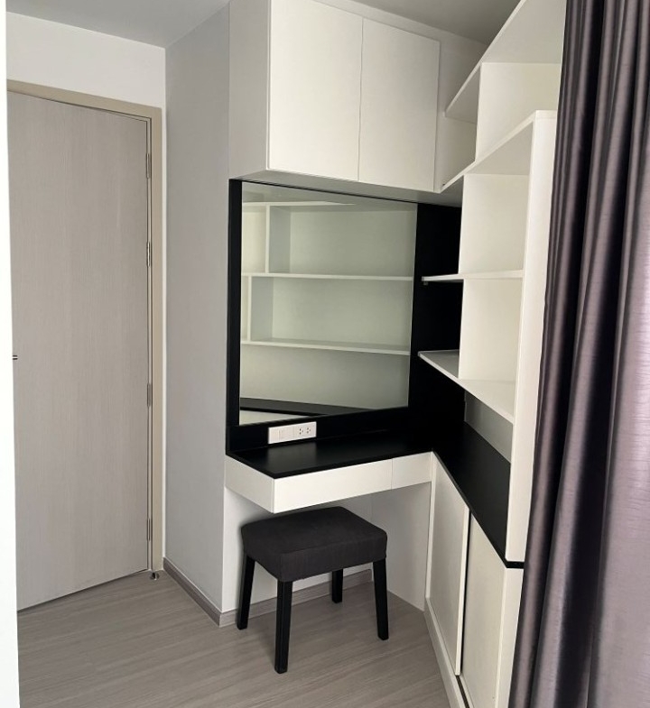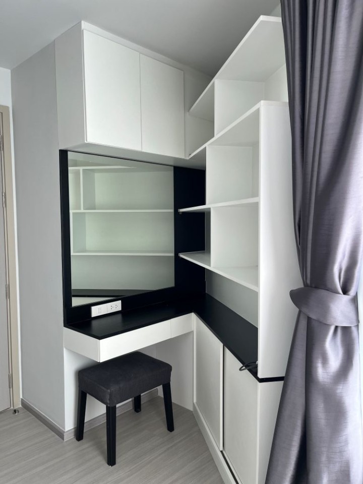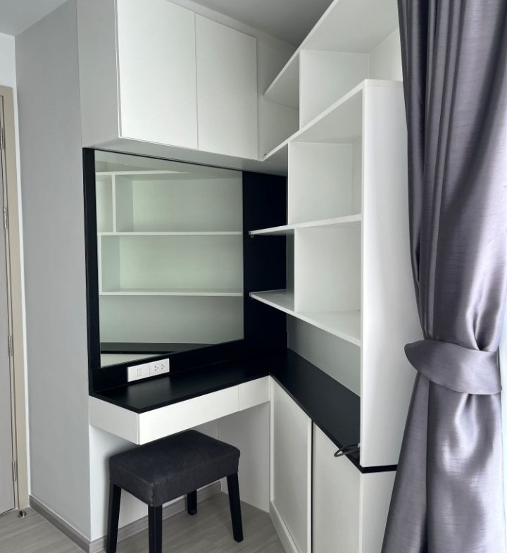– Built-in ส่วนของห้องนอน : โต๊ะเครื่องแป้ง พร้อมชั้นวางของและตู้เก็บของส่วนตัว เตียง 6 ฟุต และตู้ข้างเตียง