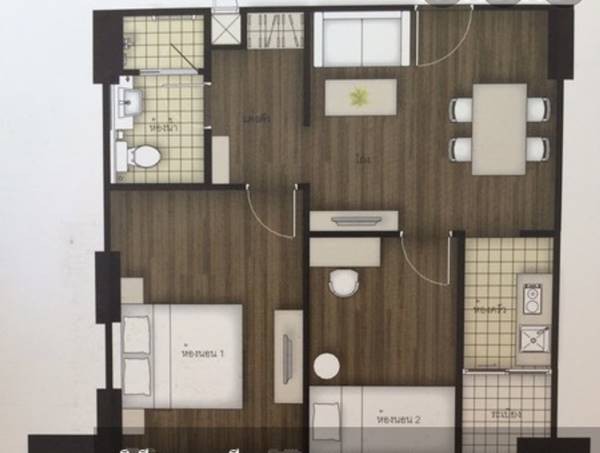 ชั้น 9 ห้องขนาด 56 ตรม 2 ห้องนอน 1 ห้องน้ำ 1 ห้องรับแขก ห้องครัว ที่จอดรถ 1 คัน