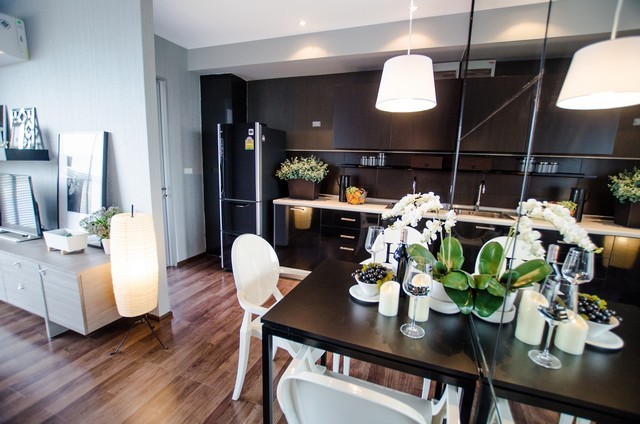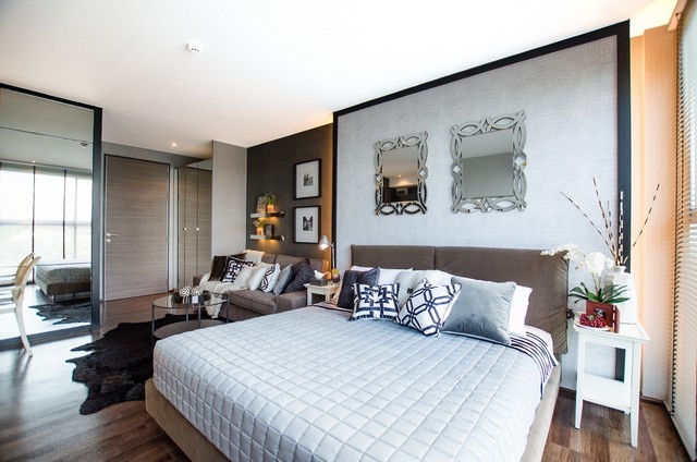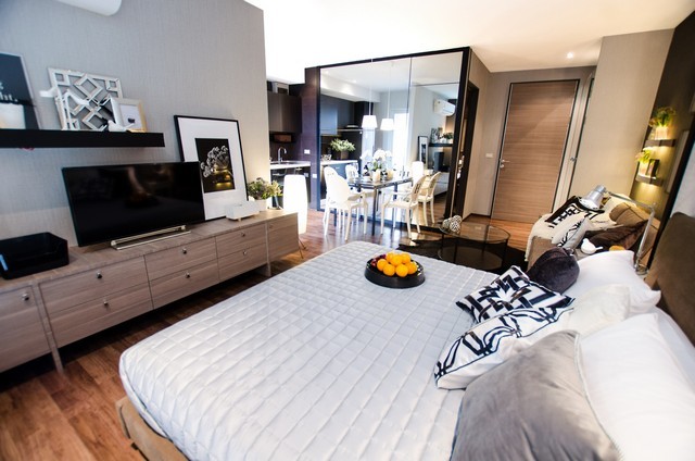 : เฟอร์นิเจอร์บิลท์อินครบ รูปแบบสวยทันสมัย (Contemporary Aesthetic) เน้นใช้พืนทีให้เกิดประโยชน์สูงสุด ตอบโจทย์การใช้งานทีหลากหลาย และใช้งานได้จริง (Maximize Space & Functionality)