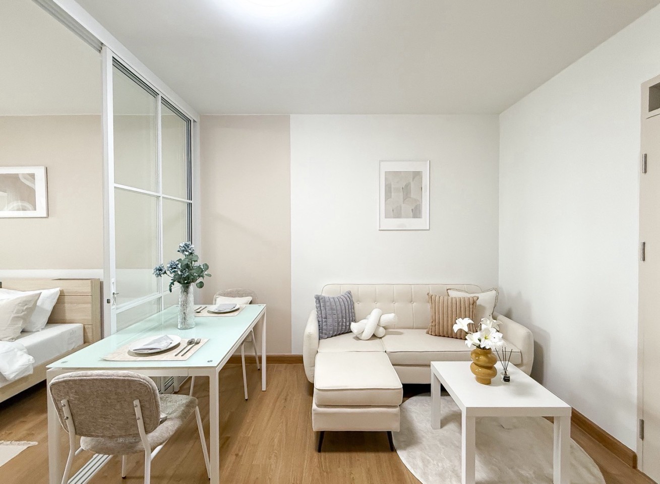 1 ห้องนอน, 1 ห้องน้ำ, 1 ห้องรับแขก, 1 เครื่องทำน้ำอุ่น, ชุดครัว, ตู้เย็น, แอร์ 2 เครื่อง