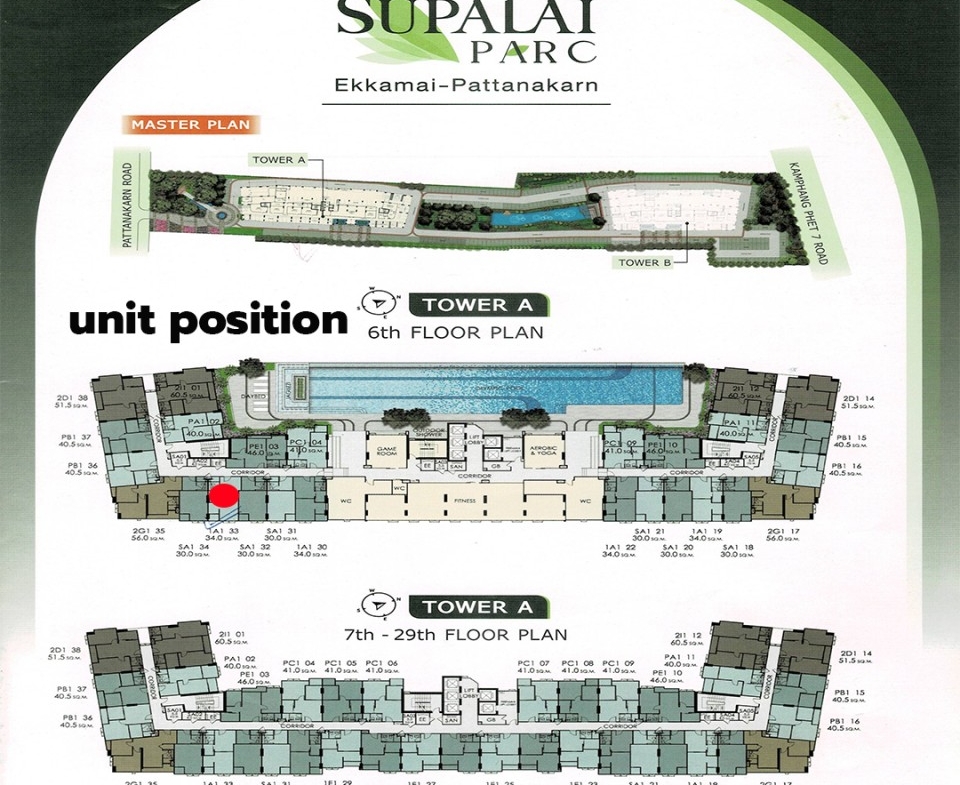 อาคาร A ชั้น 6 (จาก 30 ชั้น) ชั้นเดียวกันกับ สระว่ายน้ำ และ ฟิตเนส