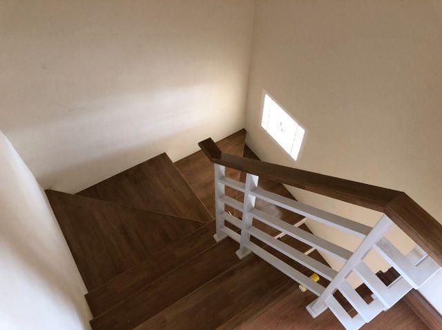 พื้นชั้นล่างปูกระเบื้องแกรนิตโต้ พื้นชั้นบนปูลามิเนต