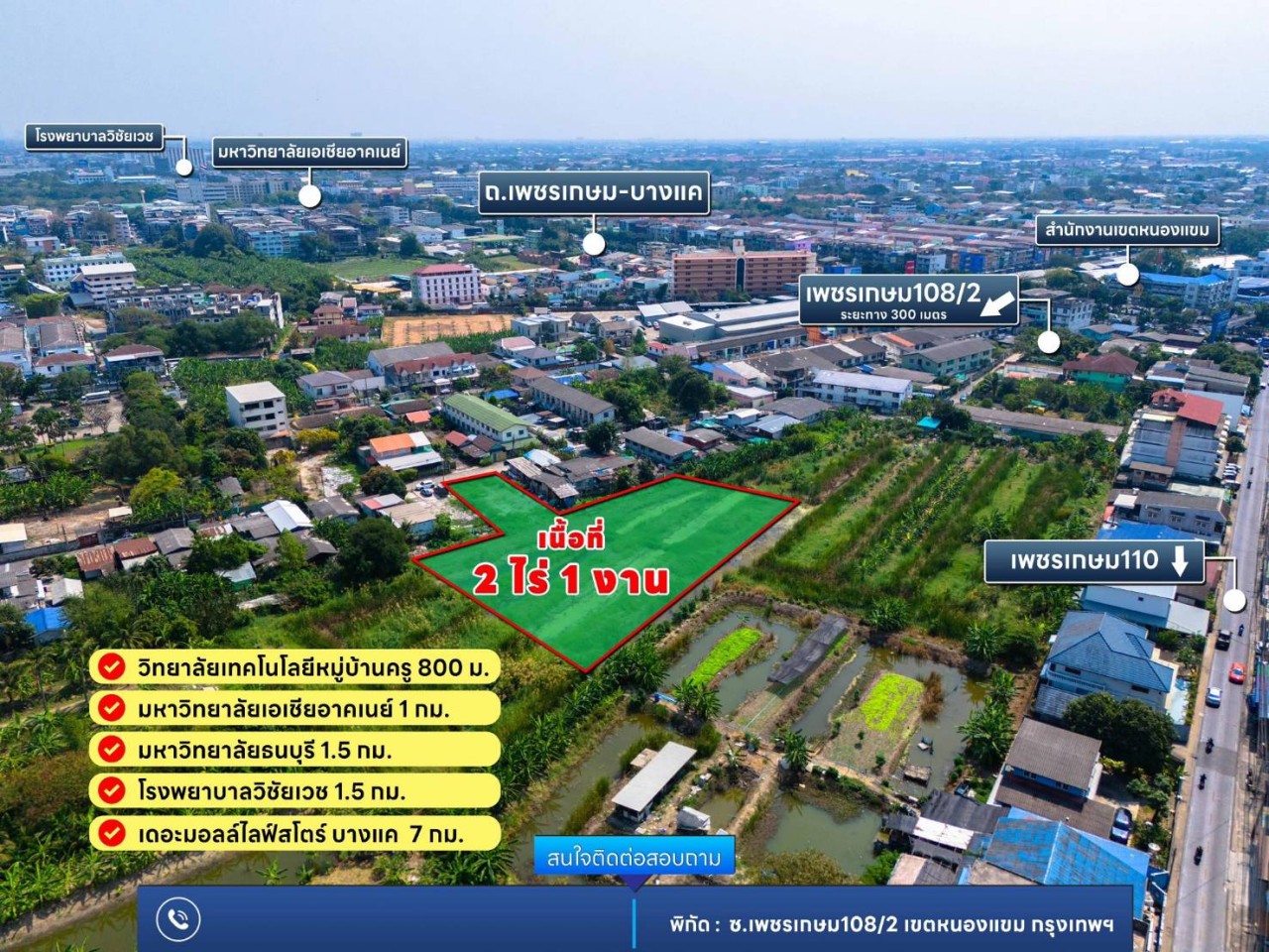 ขายถูกมาก!! ที่ดินทำเลทองติดถนนเพชรเกษม ขนาด 2 ไร่ 1 งาน ใกล้บิ๊กซี เดอะมอลล์บางแค รถไฟฟ้า 3 สาย