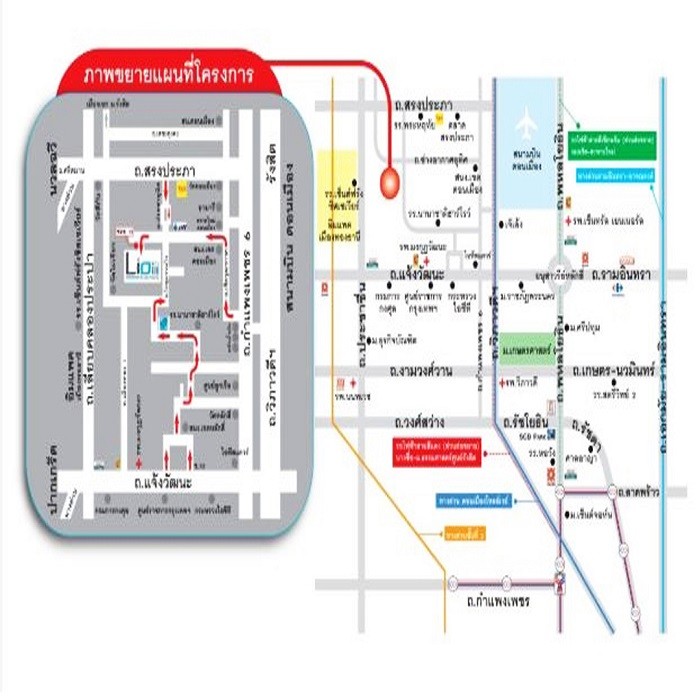 – โครงการตั้งอยู่ในซอยสำนักงานเขตดอนเมือง (ช่างอากาศอุทิศ13) สามารถเข้า-ออกได้ 3 เส้นทางหลัก : ถ.วิภาวดี, แจ้งวัฒนะ ซ.10, และ ถ.สรงประภา
