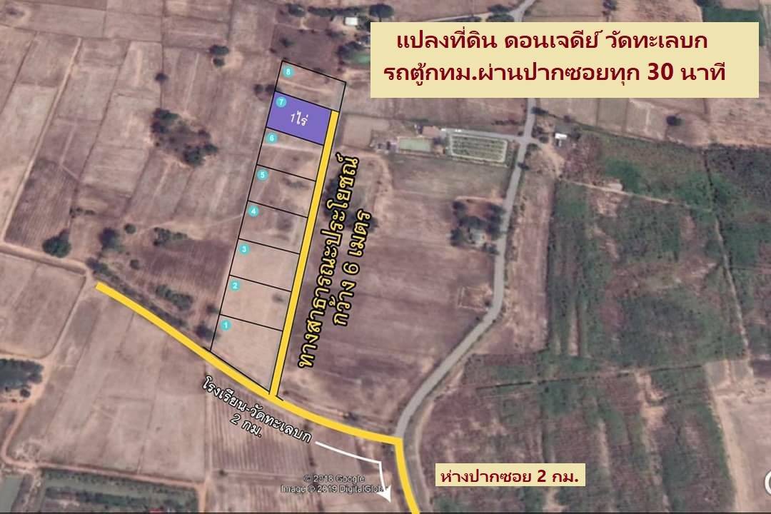 – ปากซอยเป็นวัดทะเลบกติดถนนใหญ่ เข้าซอยข้างวัดถึงที่ดิน 2 กม. (4นาที)