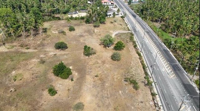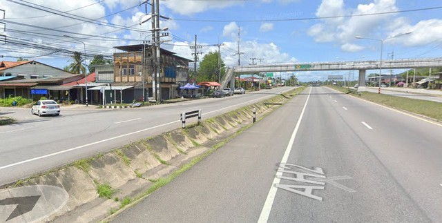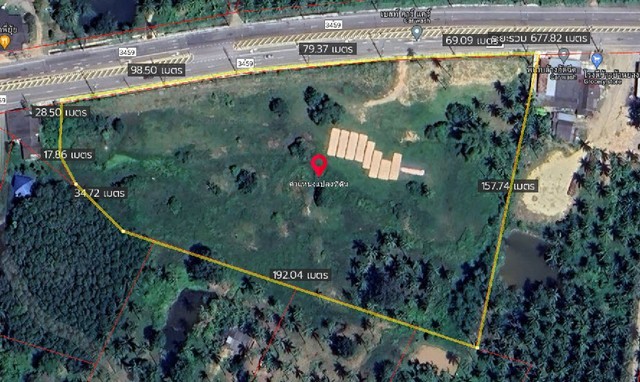 2) ที่ดินมีหน้ากว้างติดถนนทางหลวงหมายเลข 3459 (บ้านกรูด) 248 เมตร และมีความลึกประมาณ 158 ม. (ซ้าย-มองจากถนนเข้าที่ดิน) และ 48 ม. (ขวา-มองจากถนนเข้าที่ดิน) โดยถนน 4 เลนที่ติดกับที่ดินมีเขตทางกว้าง 32 เมตร