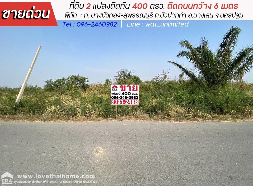 ขายที่ดินบางเลน นครปฐม ถ.บางบัวทอง-สุพรรณบุรี ถนนเลี่ยงช่วงเทศกาล ชัยนาท-นครสวรรค์ ที่สวย หน้ากว้าง 18 เมตร ลึก 44 เมตร มี 2 แปลงติดกัน แปลงละ 200 ตารางวา ติดถนนซอยกว้าง 6 เมตร เหมาะทำโครงการหมู่บ้าน,ที่อยู่อาศัย, บ้านพักตากอากาศ, การเกษตร