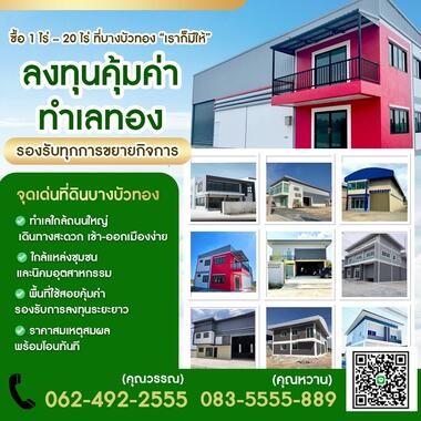 ขายที่ดินพร้อมรับสร้างโรงงานใหม่ ใกล้ถนนใหญ่ มีครบจบในที่เดียว
