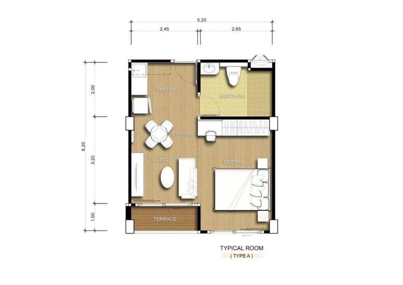 – ห้อง Type A Studio 34 ตร.ม. จำนวน 25 ห้อง