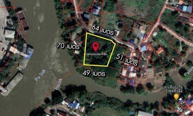ขายที่ดินเปล่าติดแม่น้ำป่าสัก พื้นที่ 2-2-17 ไร่ ต.ปากจั่น อ.นครหลวง จ.พระนครศรีอยุธยา