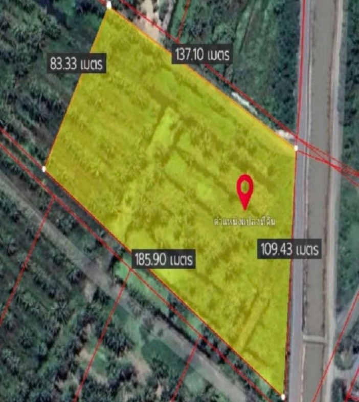 – หน้ากว้าง 109 เมตร(ด้านติดถนน) Xยาว 185 เมตร(ด้านยาวสุด)