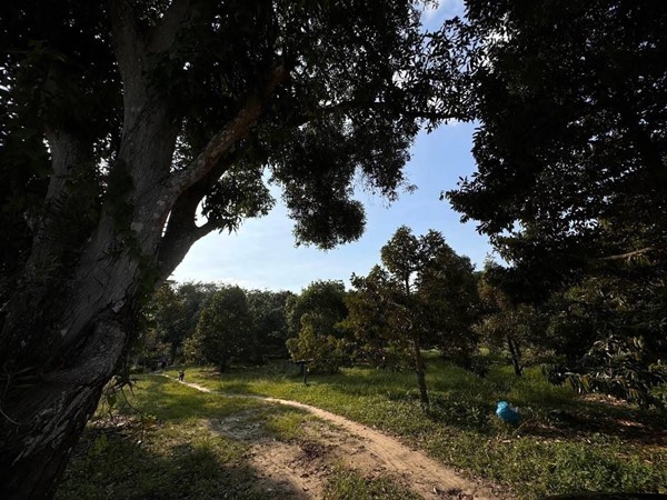 ขายสวนทุเรียน พร้อมแหล่งน้ำธรรมชาติ มีน้ำตลอดปี เชื่อมกับลำรางสาธารณะ ใกล้ทะเล วิวภูเขา