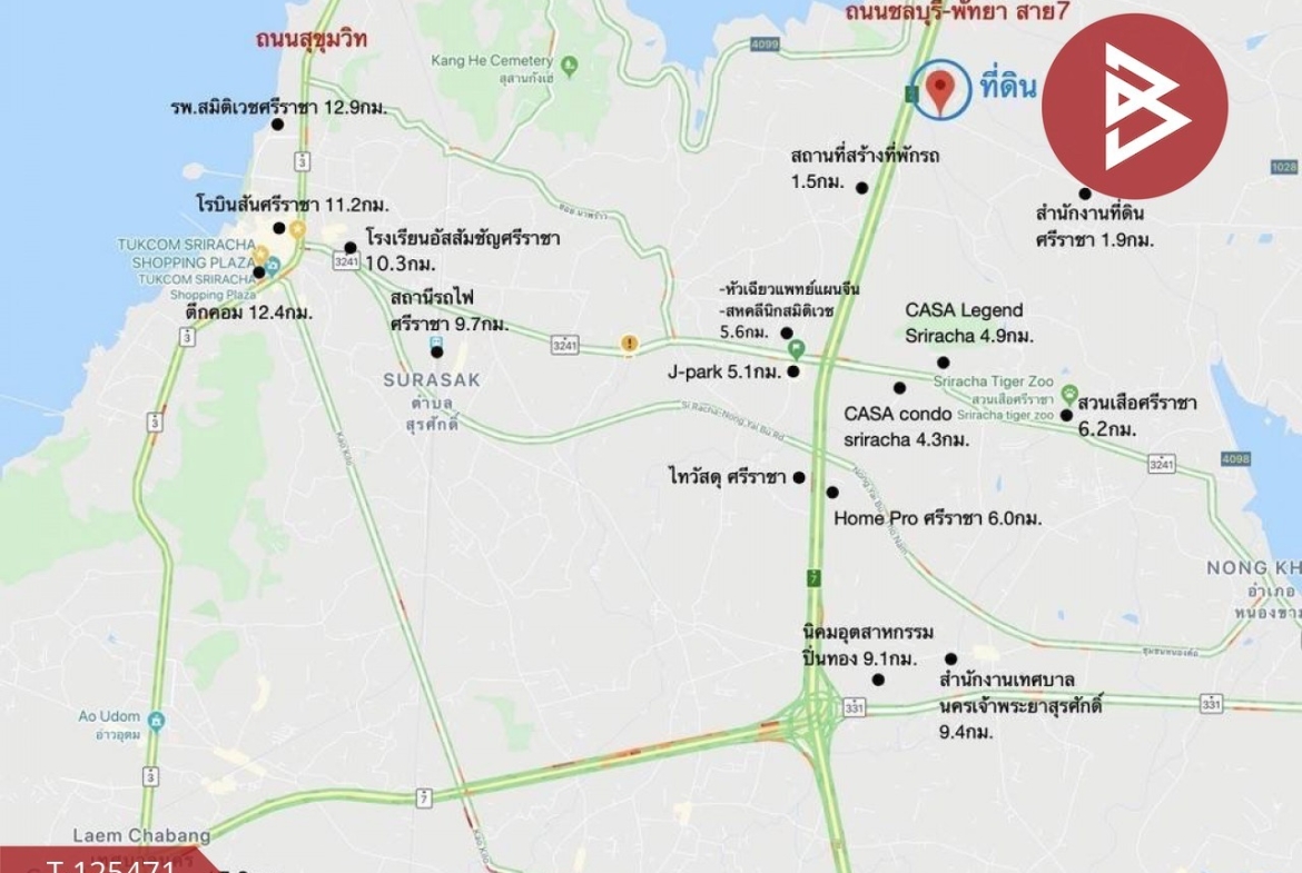 – สำนักงานทีดิน จังหวัดชลบุรี สาขาศรีราชา 2 กม.