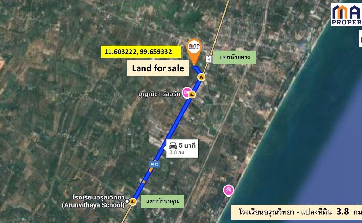 -จากโรงเรียนอรุณวิทยา(สี่แยกบ้านแสงอรุณ) 3.8 กม.