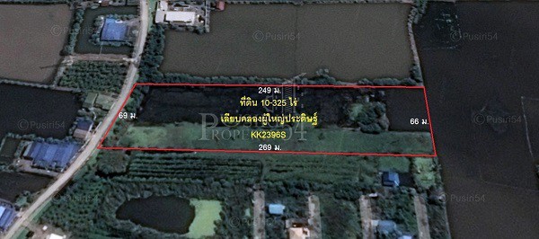 ที่ดินบนถนนเลียบคลองผู้ใหญ่ประดิษฐ์ เนื้อที่ 10 ไร่ 3 งาน 25 ตารางวา ทรงสี่เหลี่ยมสวยใช้งานง่าย เพียง 15 นาทีขับรถ จากเส้นวงแหวนกาญจนา