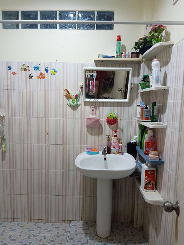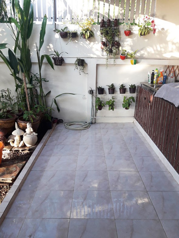 ลานซักล้างปูกระเบื้อง มีประตูด้านข้างตัวบ้าน