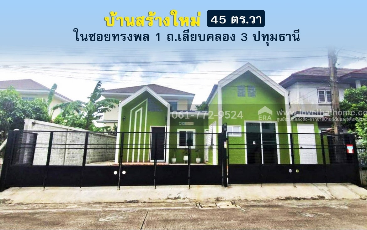 ขายบ้านเดี่ยวชั้นเดียว 45 ตร.วา ในซอยทรงพล 1 เลียบคลอง 3 คูคต ปทุมธานี ใกล้รถไฟฟ้า BTS (สถานีคูคต) และ รพ.สินแพทย์ ลำลูกกา บ้านสร้างใหม่ ราคา 3.8 ล้าน