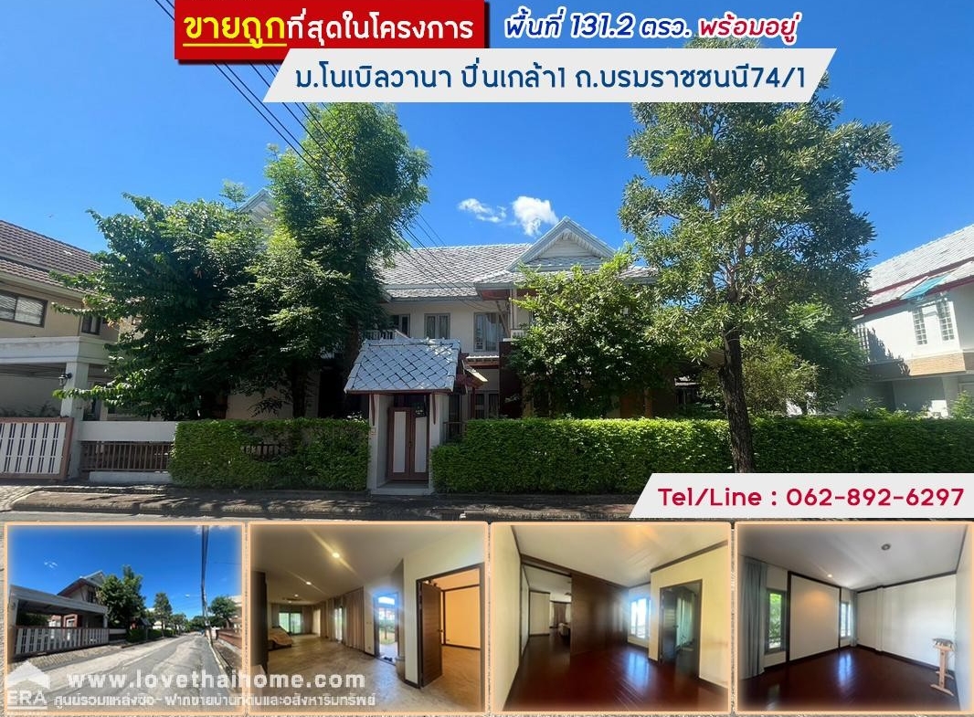 ขายบ้านเดี่ยว2ชั้นหมู่บ้านโนเบิลวานา ปิ่นเกล้า1 ซอยบรมราชชนนี74/1 ขนาด 131.2 ตรว. ลดราคาพิเศษ ขายเพียง 9,980,000 บาท ทำเลทองติดถนนหลัก ขายถูกสุดในย่านนี้ ด่วน! สนใจโทร. 062-892-6297