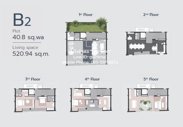 1. บ้านใจกลางเมืองดีไซน์โดดเด่น 5 ชั้น (Vertical House) พัฒนาการ (Pattanakarn) บนเนื้อที่ 40.80 ตร.ว. พื้นที่ใช้สอย 520.94 ตร.ม.