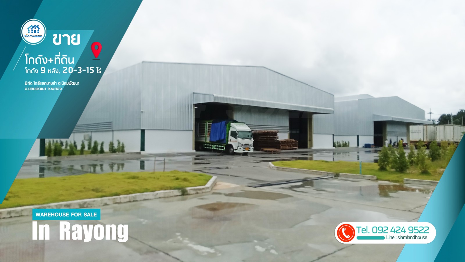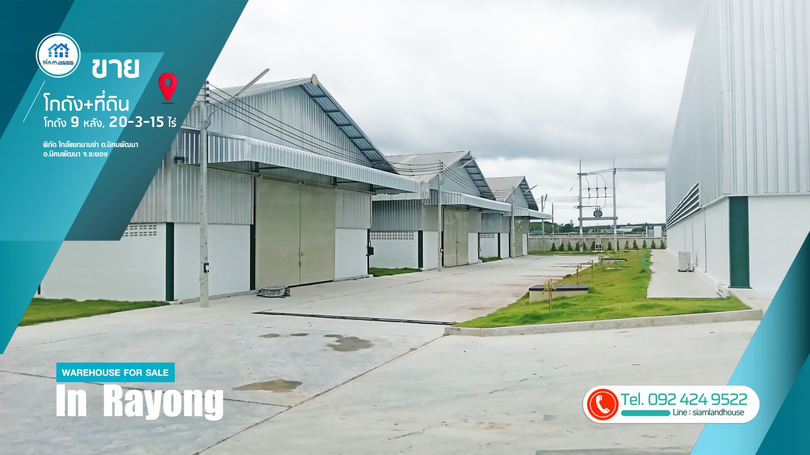 仓库+土地 20-3-15 rai 土地上有9个仓库,已由客户租用。租赁合同为3年。