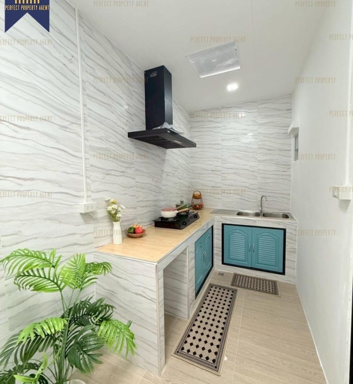 เฟอร์นิเจอร์ : ปั๊มน้ำ+ถังสำรองน้ำ เตาแก๊ส+เครื่องดูดควัน โซฟา โต๊ะกลาง ชั้นวางทีวี โต๊ะทานข้าว 1 ชุด เตียง ที่นอน ตู็เสื้อผ้า โต๊ะเครื่องแป้ง แอร์ห้องนอน
