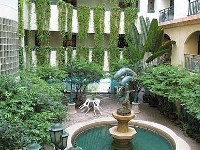 ตึกเป็นรูปตัวยู ทุกห้องเปิดประตูออกสู่โถงกลางตึก