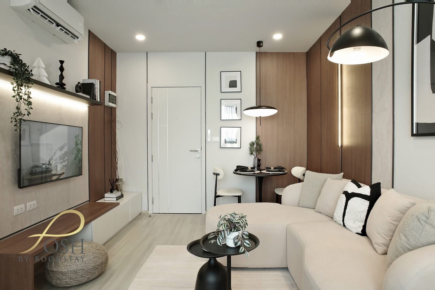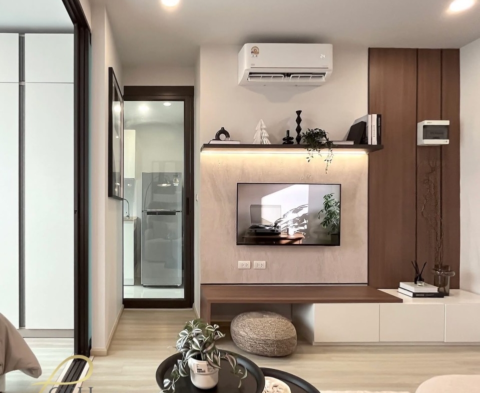คอนโดรีโนเวทใหม่สไตล์ Modern Walnut – ผสมผสานความอบอุ่นของไม้ วอลนัท เข้ากับความงามอันประณีตของ หินธรรมชาติ เนื้อสัมผัสจากธรรมชาติและโทนสีกลางช่วยสร้างบรรยากาศที่สงบ เรียบหรู และเชื่อมโยงการใช้ชีวิตแบบโมเดิร์นเข้ากับความงามของธรรมชาติได้อย่างลงตัว