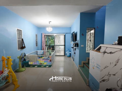 -ชั้นล่าง ภายในปูพื้นกระเบื้องมี 1 ห้องน้ำ 1 ห้องครัว ด้านหน้าบ้านมีห้องเก็บของและต่อเติมหลังคาโรงจอดรถ บริเวณด้านข้างบ้านถึงห้องครัวต่อเติมเต็มพื้นที่มีพื้นที่ใช้สอยเยอะ