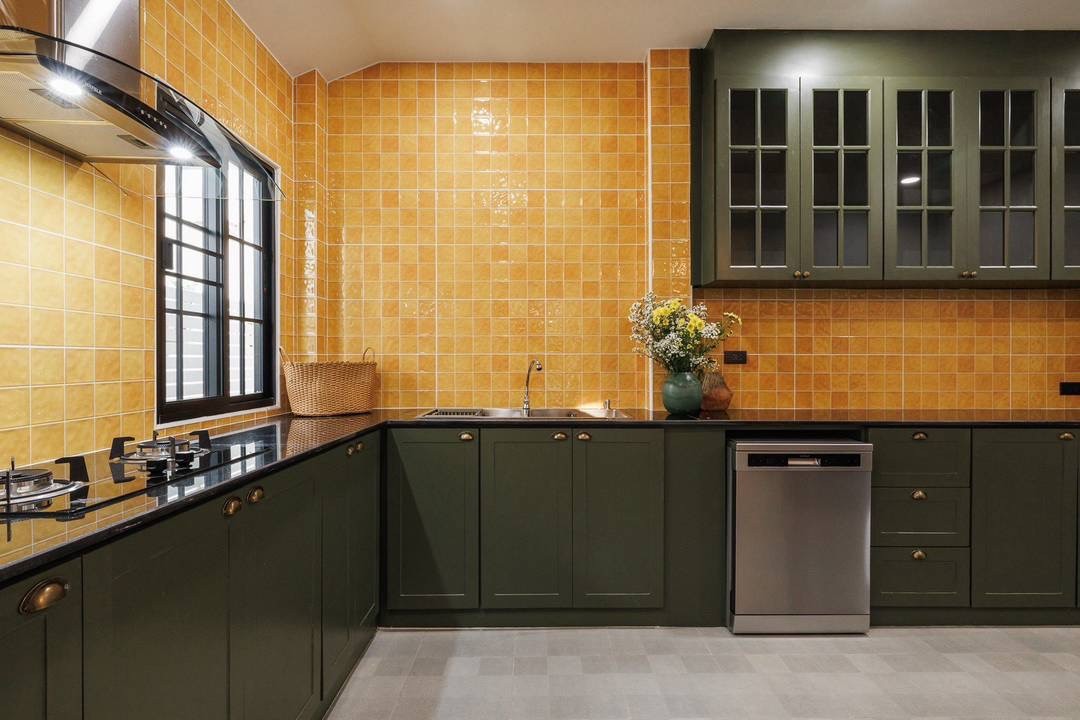 • 整体橱柜式厨房:含操作台、炉灶、抽油烟机、水槽、烤箱、微波炉、洗碗机