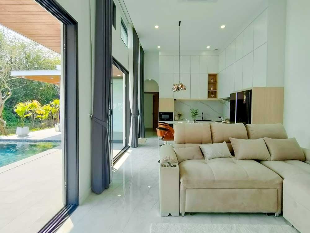 • Living Space – Spacious living area with large windows letting in plenty of natural light and also a view of the pool and greenery.