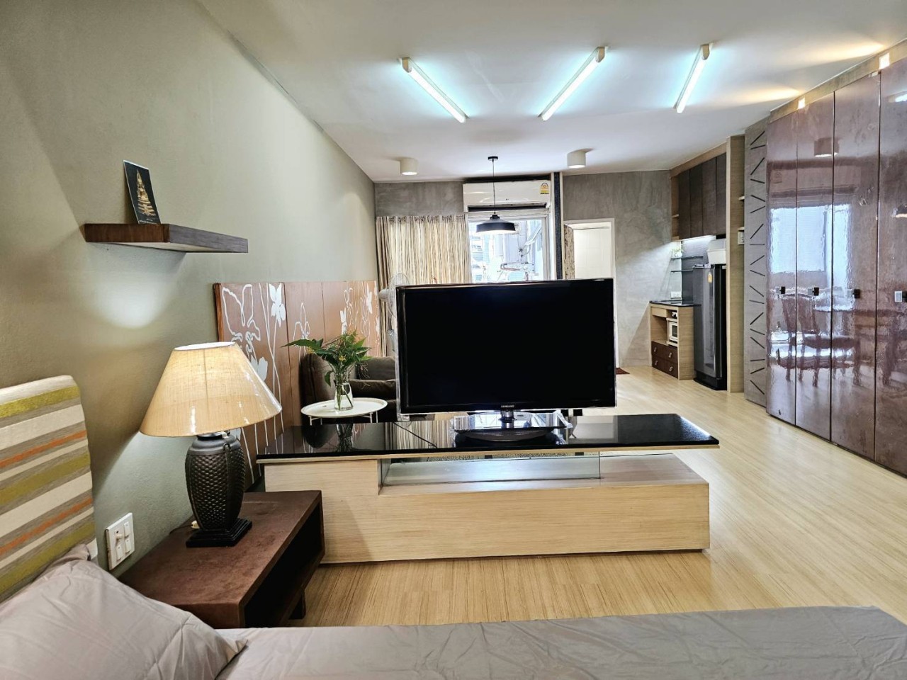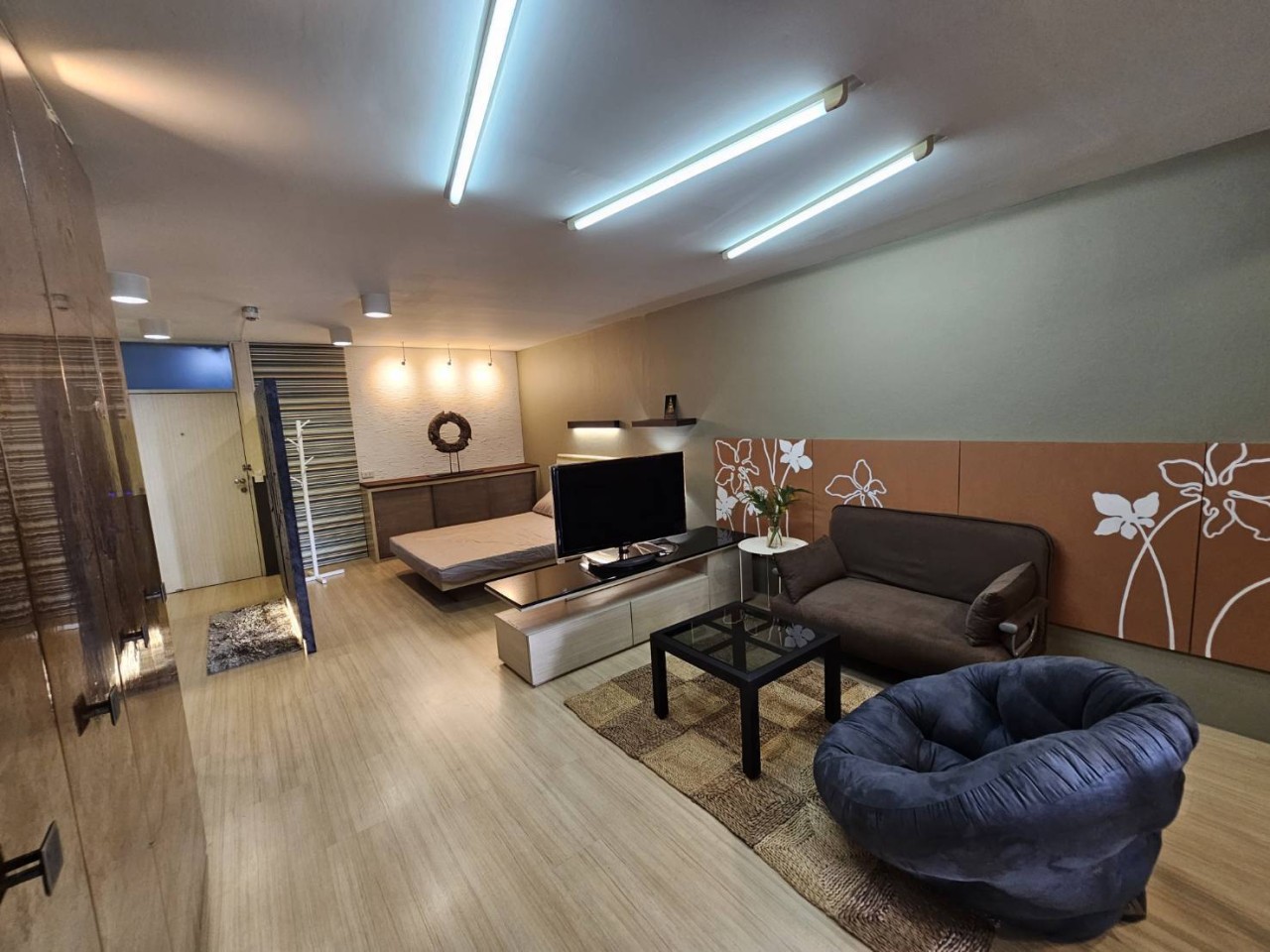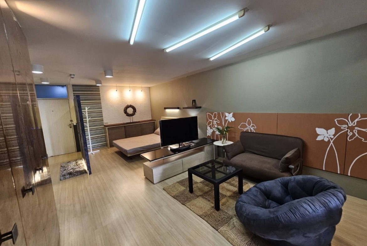 – 1 ห้องโถ่ง แบ่งสัดส่วน นอน , นั่งเล่น , ครัว ชัดเจน