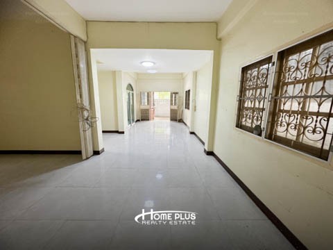 -ชั้นล่าง พื้นปูด้วยกระเบื้อง มี 1 ห้องโถงนั่งเล่นและรับแขก 1 ห้องอเนกประสงค์ 1 ห้องครัว 1 ห้องน้ำ