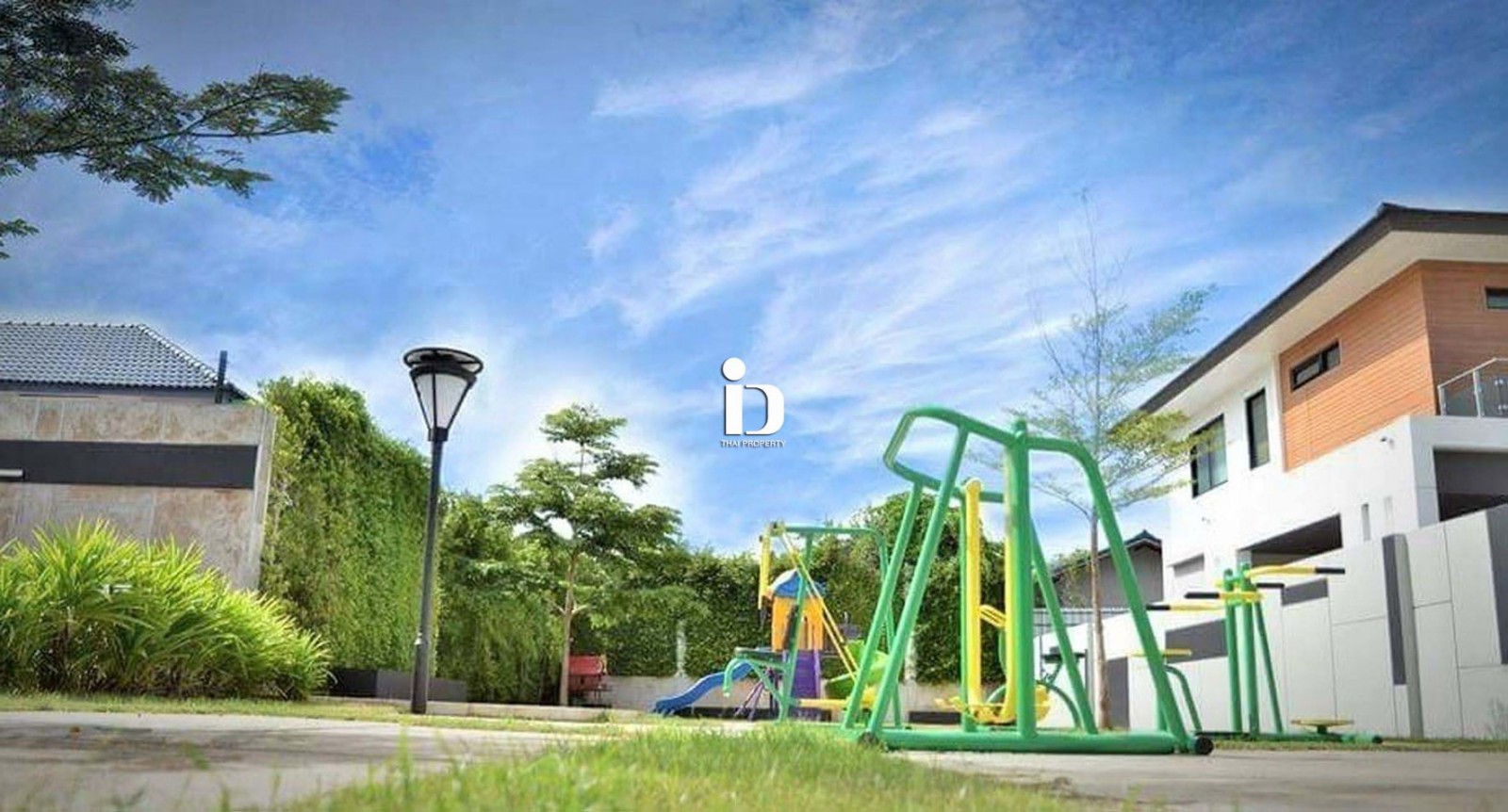อยู่ตรงข้ามสวนและสนามเด็กเล่นของหมู่บ้าน
