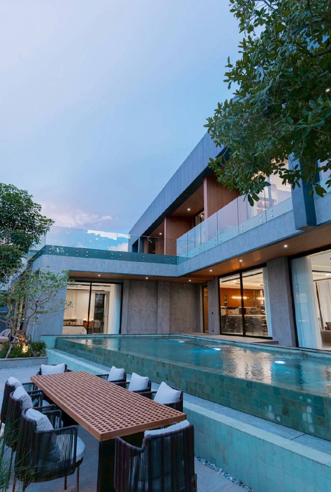 ดีไซน์ Modern Luxury ผสานวัสดุพรีเมียม — เหล็ก ไม้ กระจก และหินลายเฉพาะ สะท้อนรสนิยมและความอบอุ่นอย่างลงตัว