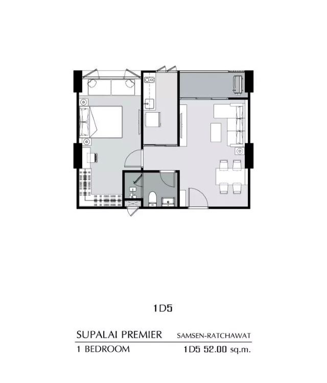 1 ห้องนอน 1 ห้องน้ำ ขนาดใหญ่สุดของ Size 1 ห้องนอน อยู๋ที่ 52 ตรม ชั้น 16 ชั้นสูงสุด วิวดี โปร่งสบาย