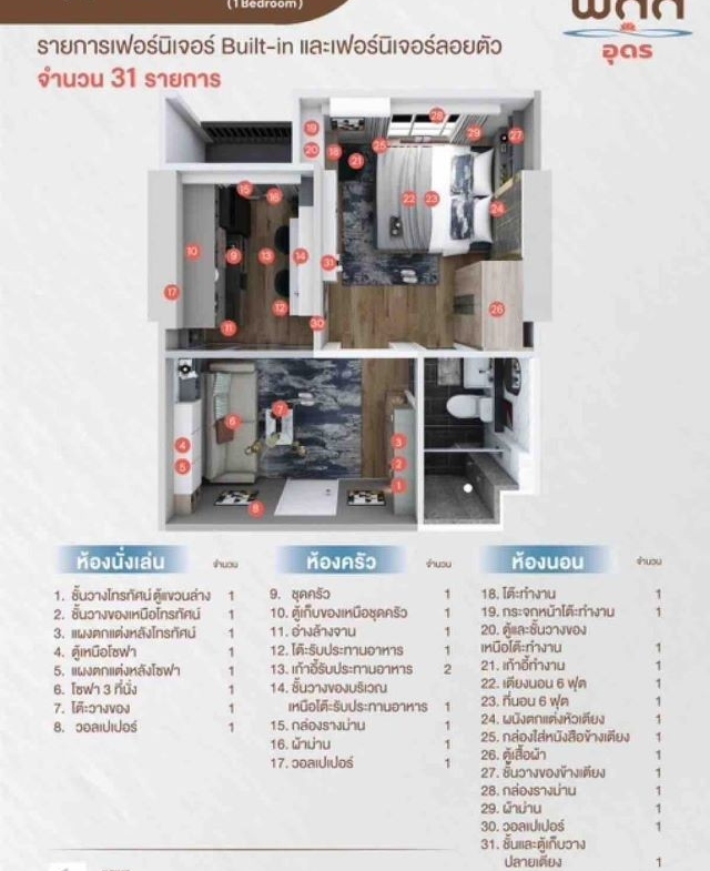 ชุดครัว เฟอร์นิเจอร์บิลท์อินและลอยตัวครบครัน 31 รายการ