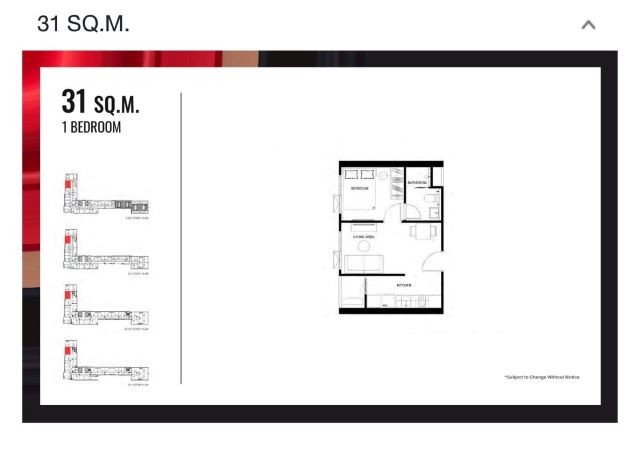 – 1 ห้องนอน ขนาด 31 ตรม.