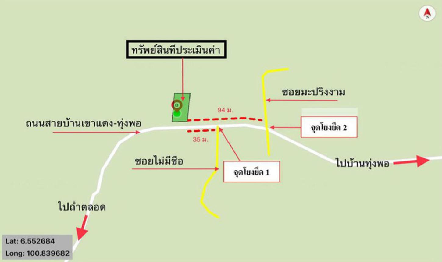 ที่ตั้งสินทรัพย์ : ถนน สายบ้านเขาแดง – ทุ่งพอ ตำบล เขาแดง อำเภอ สะบ้าย้อย จังหวัด สงขลา