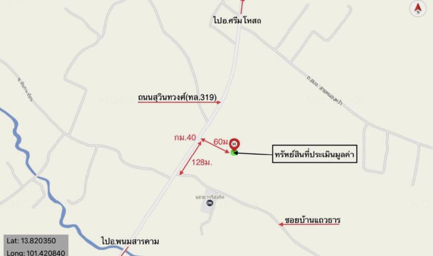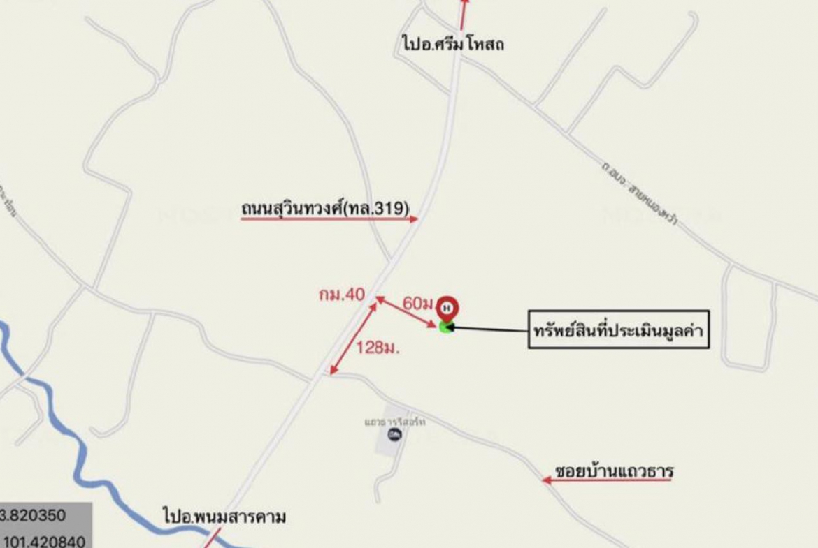ที่ตั้งทรัพย์ : ถนน สุวินทวงศ์ (ทล.319) ตำบล บ้านซ่อง อำเภอ พนมสารคาม จังหวัด ฉะเชิงเทรา