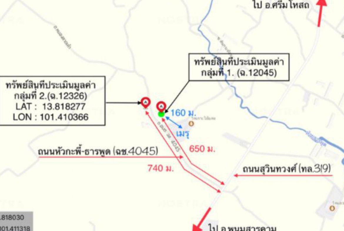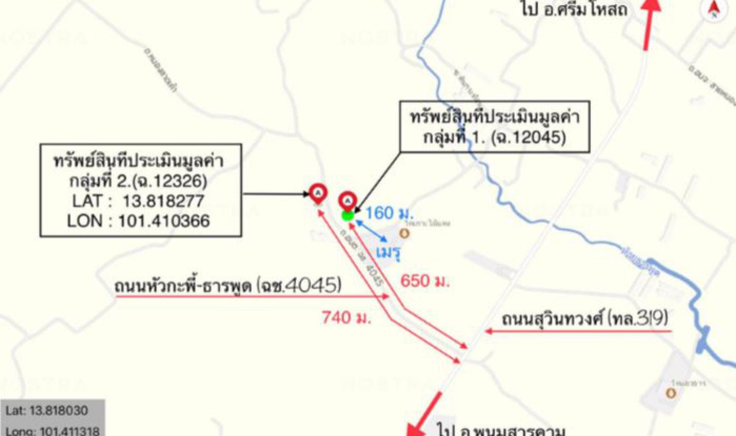 ที่ตั้งทรัพย์ : ถนน หัวกะพี้ – ธารพูด (ฉช.4045) ตำบล บ้านซ่อง อำเภอ พนมสารคาม จังหวัด ฉะเชิงเทรา